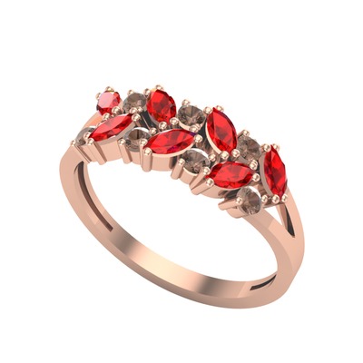 Garnet ve dumanlı kuvars 18 ayar rose altın yüzük