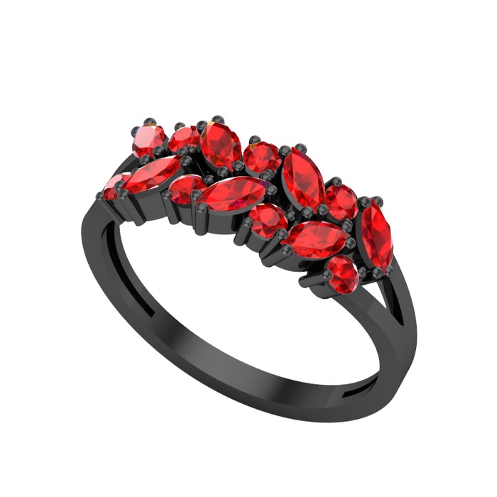 Garnet 925 ayar siyah rodyum kaplama gümüş yüzük