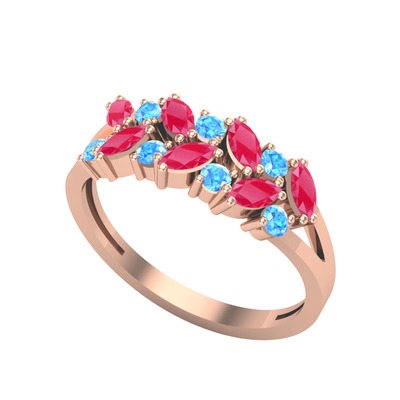 Kök yakut ve akuamarin 14 ayar rose altın yüzük