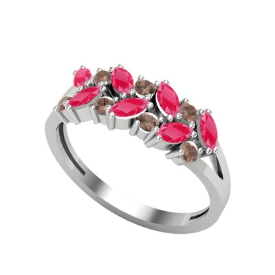 Kök yakut ve dumanlı kuvars 8 ayar beyaz altın yüzük