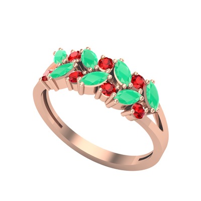 Kök zümrüt ve garnet 925 ayar rose altın kaplama gümüş yüzük