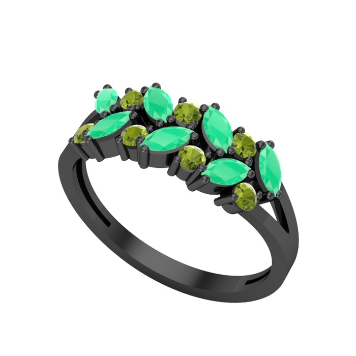 Kök zümrüt ve peridot 925 ayar siyah rodyum kaplama gümüş yüzük