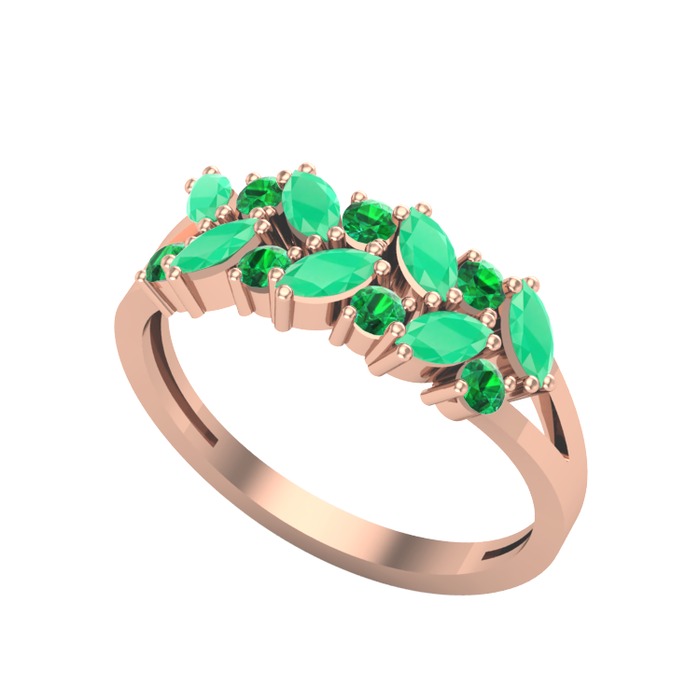 Kök zümrüt ve yeşil kuvars 14 ayar rose altın yüzük