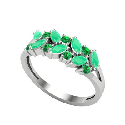 Kök zümrüt ve yeşil kuvars 925 ayar gümüş yüzük