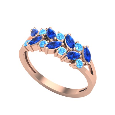 Lab safir ve akuamarin 18 ayar rose altın yüzük
