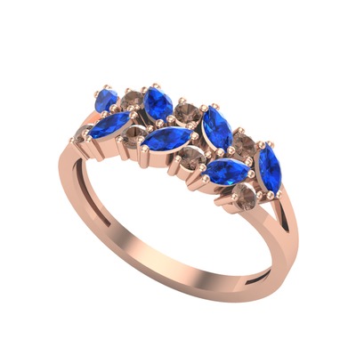 Lab safir ve dumanlı kuvars 14 ayar rose altın yüzük
