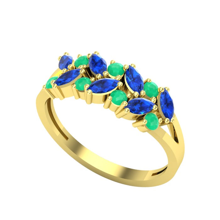 Lab safir ve kök zümrüt 18 ayar altın yüzük