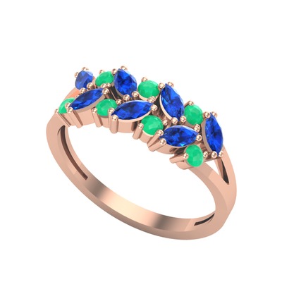 Lab safir ve kök zümrüt 925 ayar rose altın kaplama gümüş yüzük