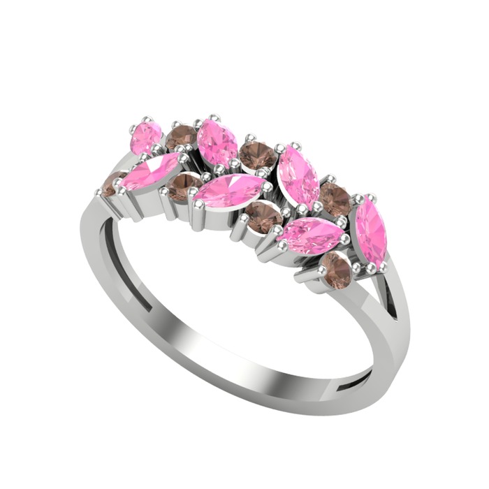 Pembe kuvars ve dumanlı kuvars 925 ayar gümüş yüzük