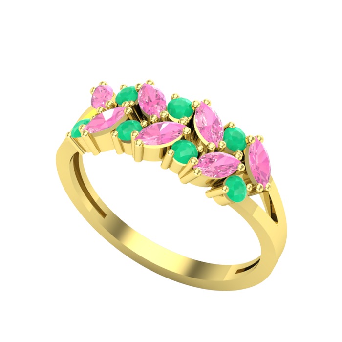 Pembe kuvars ve kök zümrüt 8 ayar altın yüzük