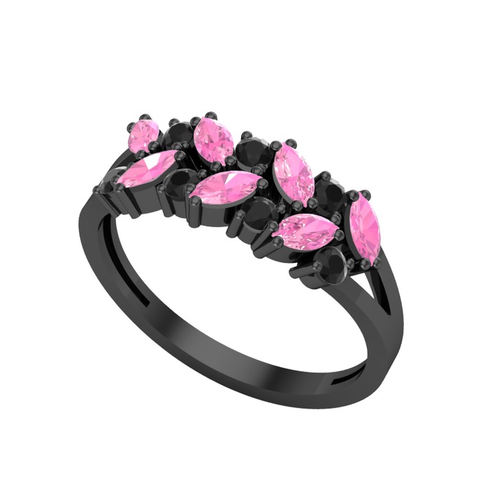 Pembe kuvars ve siyah zirkon 925 ayar siyah rodyum kaplama gümüş yüzük