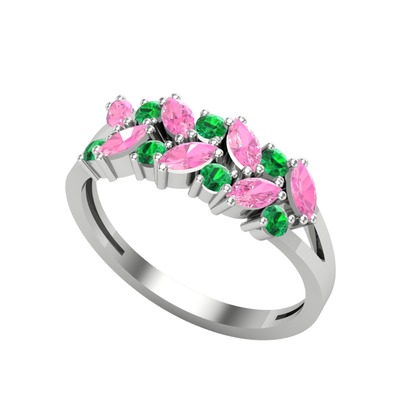 Pembe kuvars ve yeşil kuvars 14 ayar beyaz altın yüzük