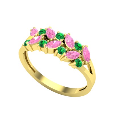 Pembe kuvars ve yeşil kuvars 18 ayar altın yüzük