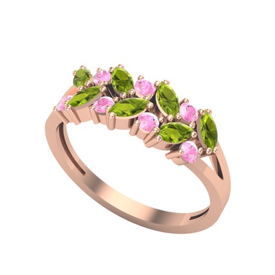 Peridot ve pembe kuvars 925 ayar rose altın kaplama gümüş yüzük