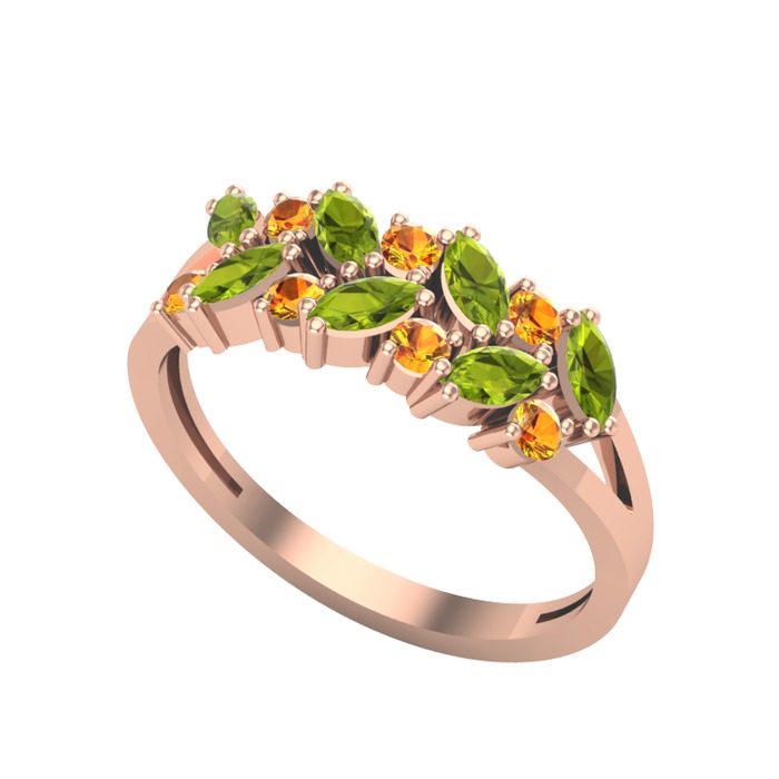 Peridot ve sitrin 8 ayar rose altın yüzük