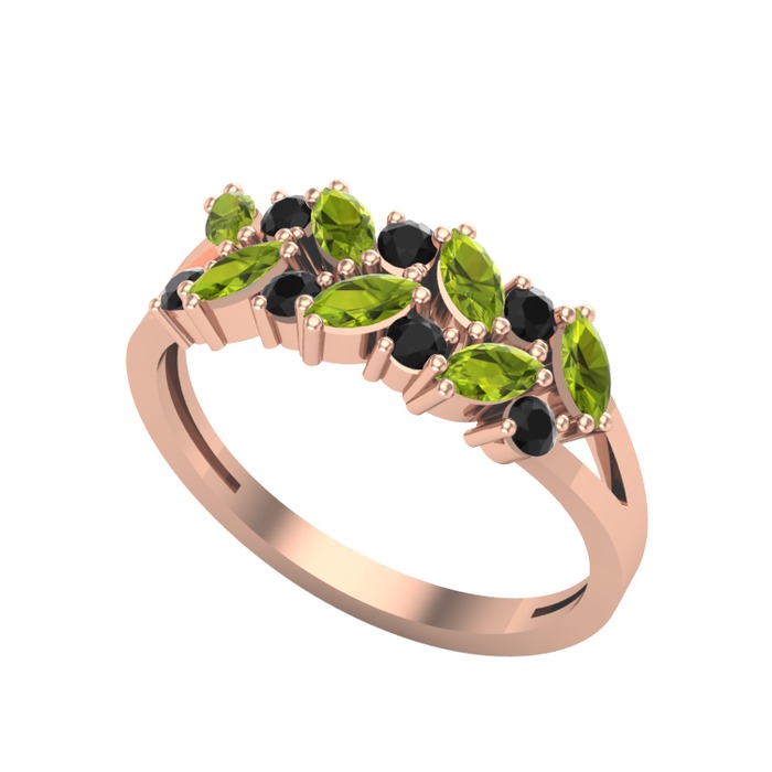 Peridot ve siyah zirkon 925 ayar rose altın kaplama gümüş yüzük