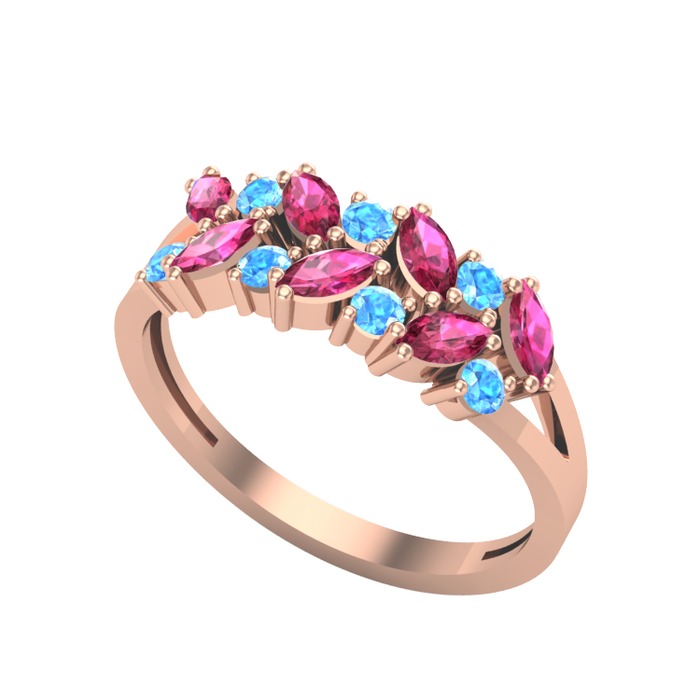 Rodolit garnet ve akuamarin 14 ayar rose altın yüzük
