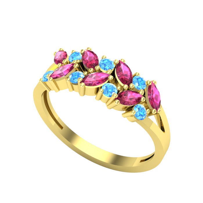 Rodolit garnet ve akuamarin 8 ayar altın yüzük