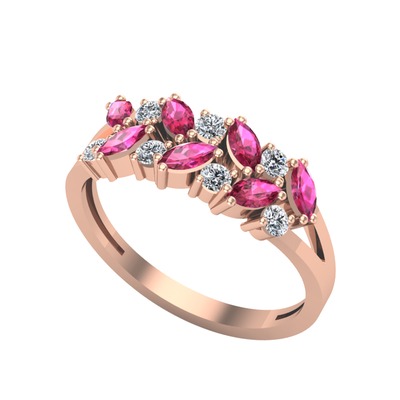 Rodolit garnet ve beyaz zirkon 18 ayar rose altın yüzük