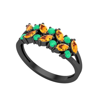 Sitrin ve kök zümrüt 925 ayar siyah rodyum kaplama gümüş yüzük