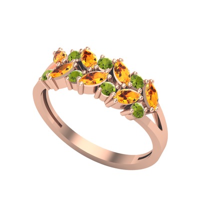 Sitrin ve peridot 925 ayar rose altın kaplama gümüş yüzük