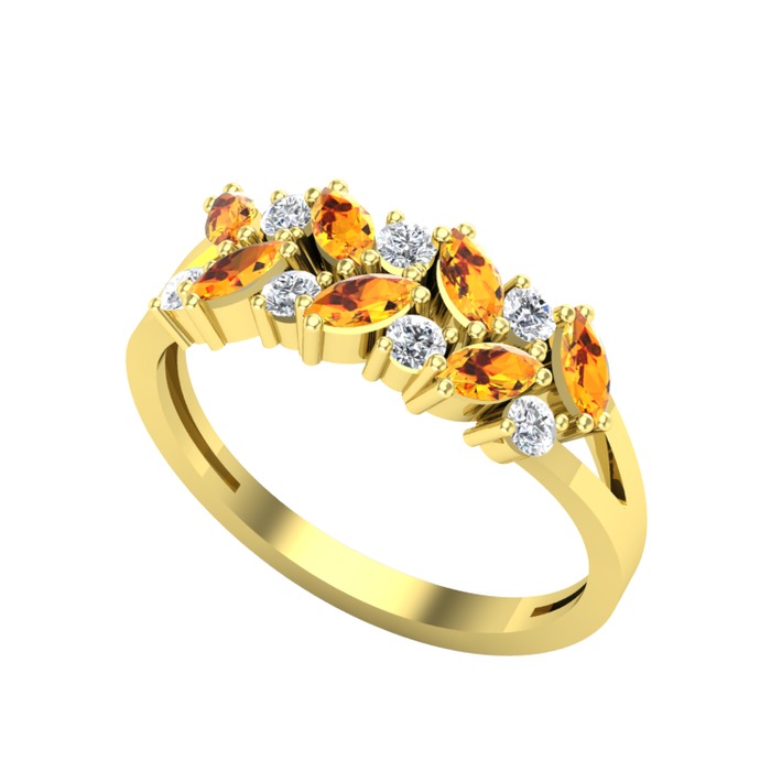 Sitrin ve pırlanta 925 ayar altın kaplama gümüş yüzük (0.252 karat)