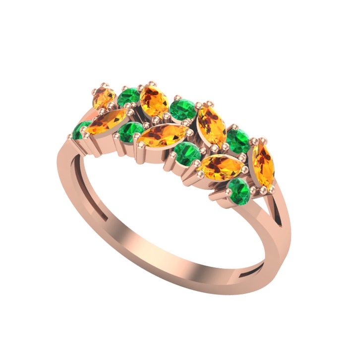 Sitrin ve yeşil kuvars 14 ayar rose altın yüzük