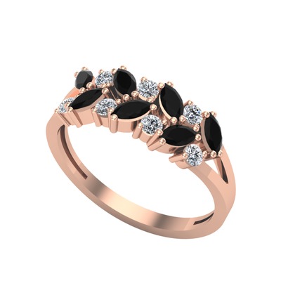 Siyah zirkon ve beyaz zirkon 8 ayar rose altın yüzük