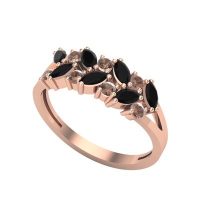 Siyah zirkon ve dumanlı kuvars 8 ayar rose altın yüzük
