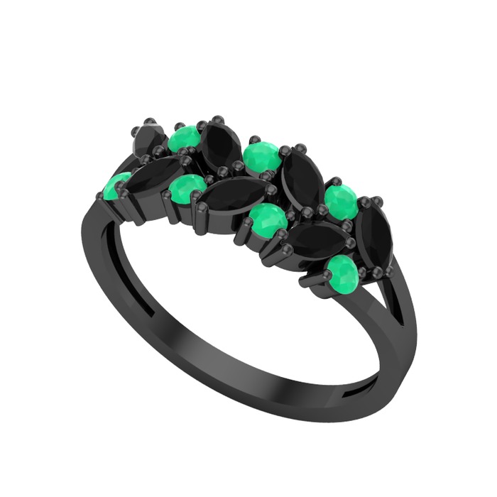 Siyah zirkon ve kök zümrüt 925 ayar siyah rodyum kaplama gümüş yüzük