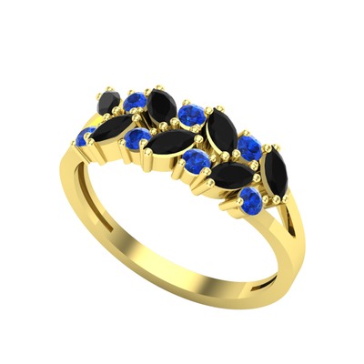 Siyah zirkon ve lab safir 8 ayar altın yüzük