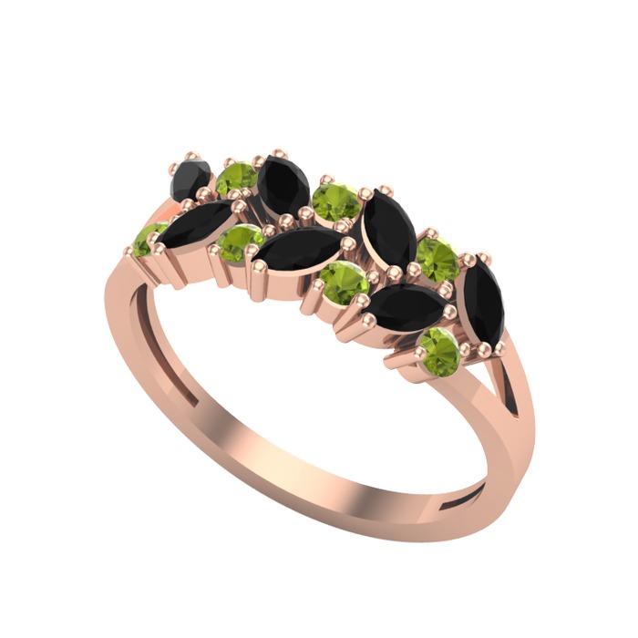 Siyah zirkon ve peridot 18 ayar rose altın yüzük