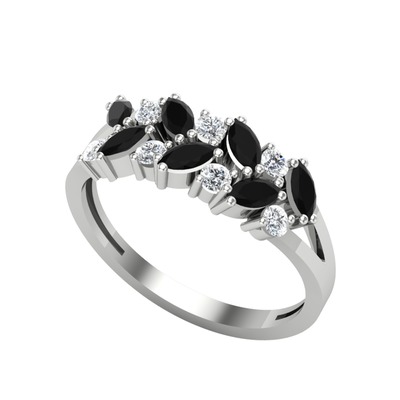 Siyah zirkon ve pırlanta 925 ayar gümüş yüzük (0.252 karat)