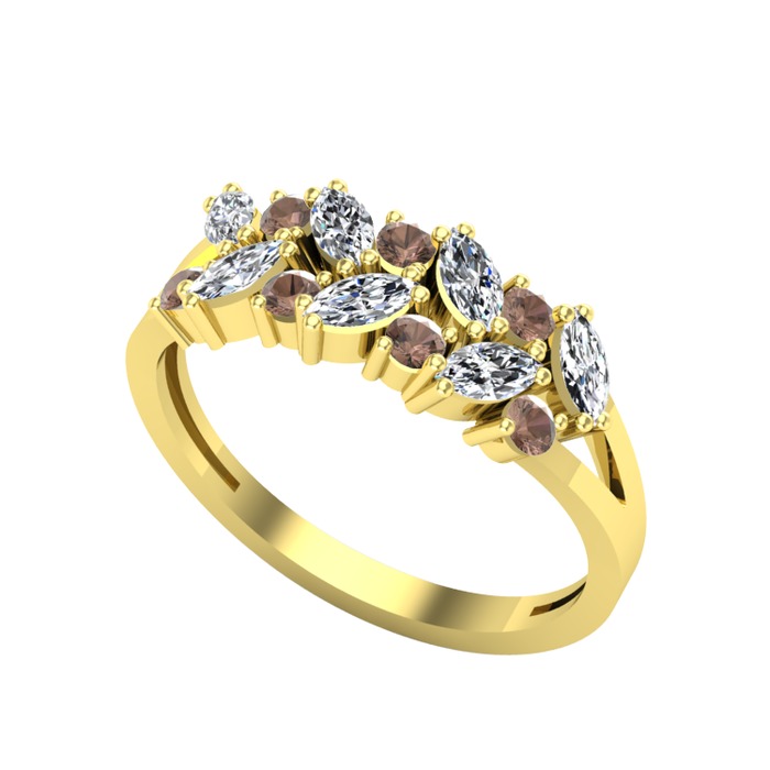 Swarovski ve dumanlı kuvars 18 ayar altın yüzük