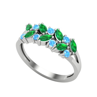 Yeşil kuvars ve akuamarin 14 ayar beyaz altın yüzük