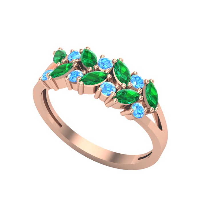 Yeşil kuvars ve akuamarin 14 ayar rose altın yüzük
