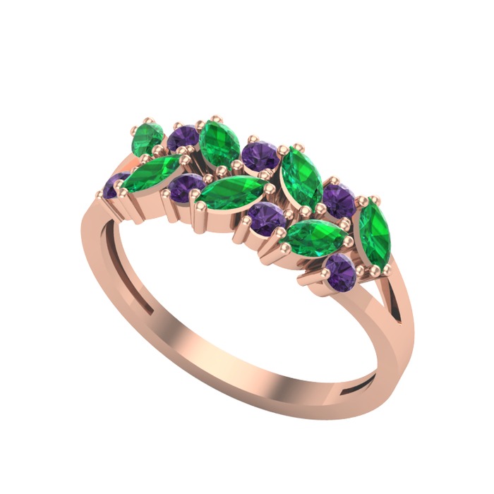 Yeşil kuvars ve ametist 18 ayar rose altın yüzük