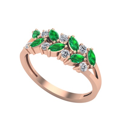 Yeşil kuvars ve beyaz zirkon 18 ayar rose altın yüzük