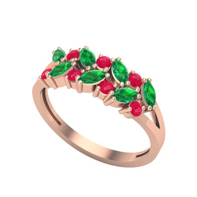 Yeşil kuvars ve kök yakut 14 ayar rose altın yüzük