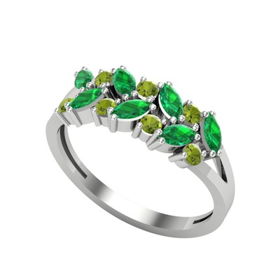 Yeşil kuvars ve peridot 8 ayar beyaz altın yüzük