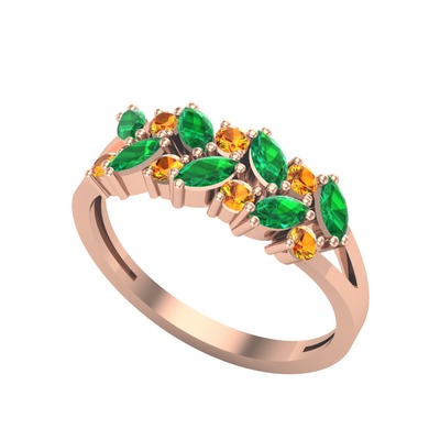 Yeşil kuvars ve sitrin 14 ayar rose altın yüzük