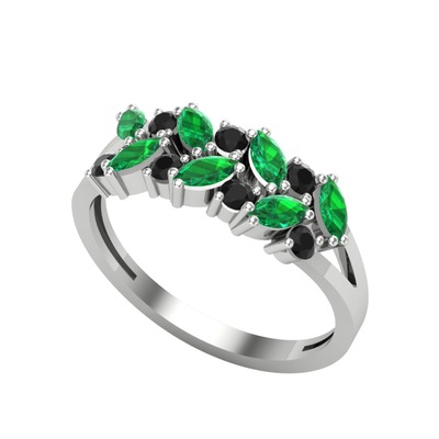 Yeşil kuvars ve siyah zirkon 18 ayar beyaz altın yüzük