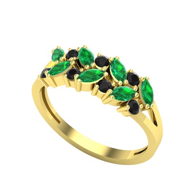 Yeşil kuvars ve siyah zirkon 8 ayar altın yüzük
