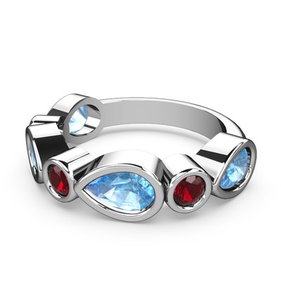 Akuamarin ve garnet 18 ayar beyaz altın yüzük