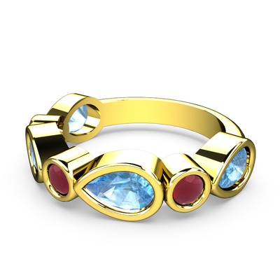 Akuamarin ve kök yakut 14 ayar altın yüzük