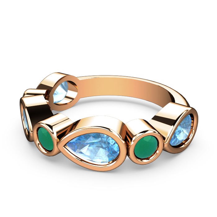 Akuamarin ve kök zümrüt 14 ayar rose altın yüzük