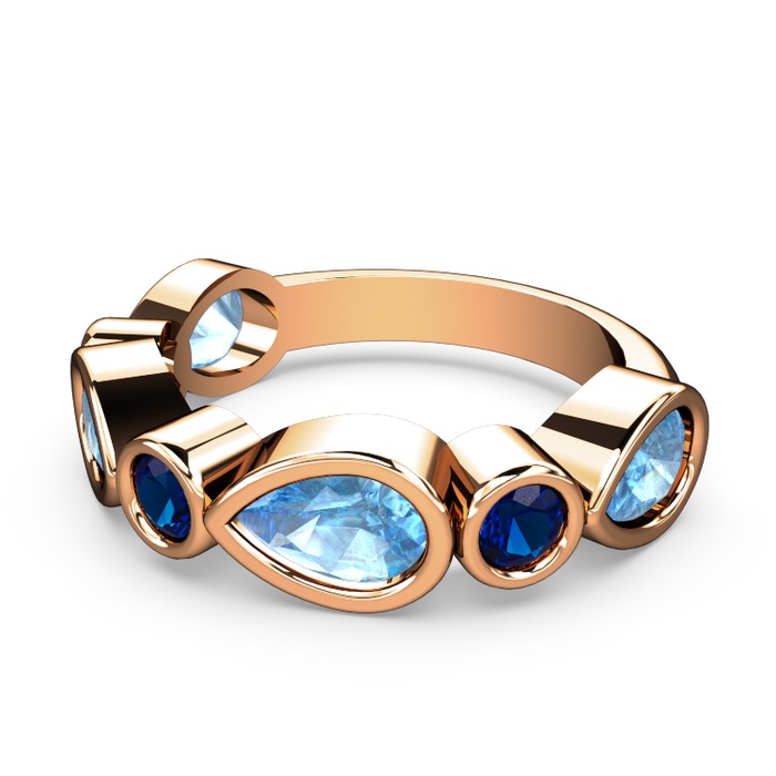 Akuamarin ve lab safir 14 ayar rose altın yüzük