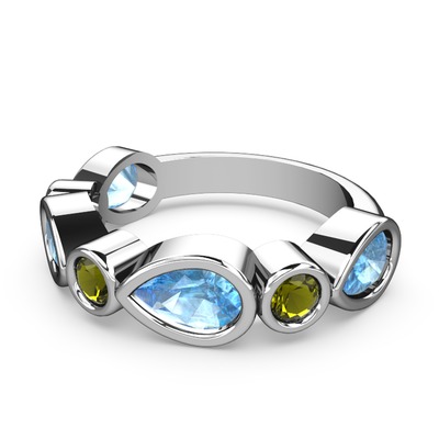 Akuamarin ve peridot 925 ayar gümüş yüzük