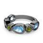 Akuamarin ve peridot 925 ayar siyah rodyum kaplama gümüş yüzük