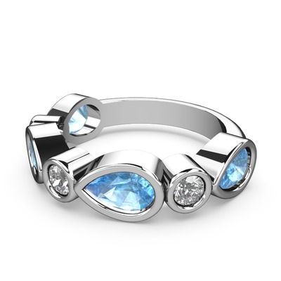 Akuamarin ve pırlanta 18 ayar beyaz altın yüzük (0.22 karat)